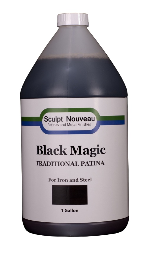Black Magic Patina creates a beautiful, rich black patina on iron and steel. It takes only 3-5 minutes to develop and does not produce the quick rust that you normally see with other blackening agents. The first coat will be dark grey, but the finish will become black after a few coats. Rust will develop if a clear sealer is not applied to the completed finish.