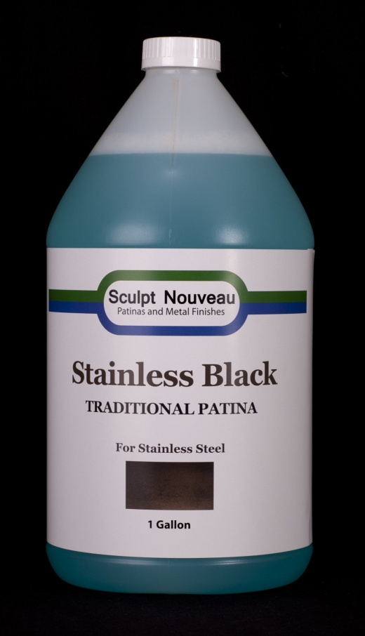 Stainless Black Patina is made specifically for stainless steel. It is not recommended for other metals, but on zinc and galvanized steel, it can produce a red-brown or weathered black patina. On stainless steel, this patina will be blue grey at first and then darken as more coats are applied. Stainless Black Patina works best at full strength, but can be diluted with distilled water if desired.