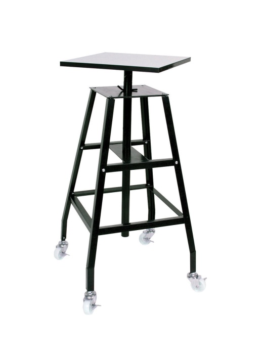 Built to handle heavy work up to 250 lbs., this steel floor stand has an adjustable height of 35" to 45". The base of this unit is 20" wide and connected to the adjustable center shaft is a 15-3/4" square top. Rubber locking casters on legs. Shipping weight; 30 lbs.
