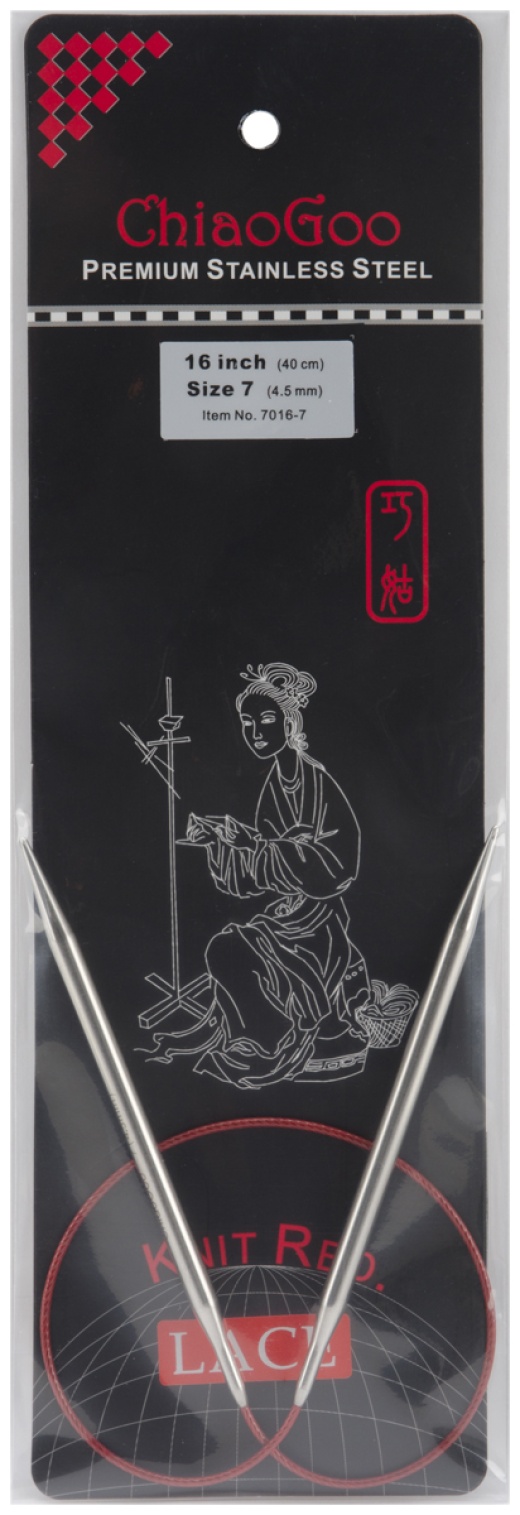 Chiaogoo Red Lace Stainless Circular Knitting Needles 16"