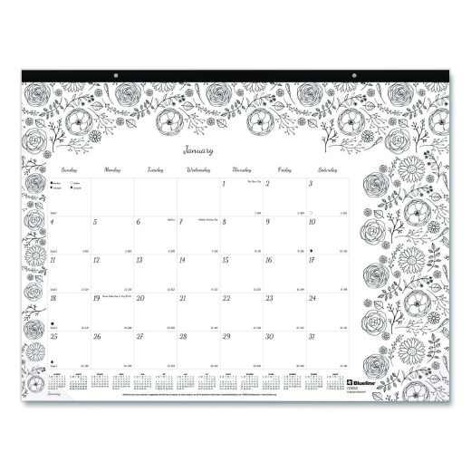 Blueline Monthly Desk Pad Calendar, Doodleplan Coloring Pages, 22 X 17