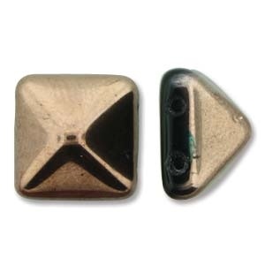 12Mm Czech 2-Hole Pyramid Bead- Jet Gold Capri