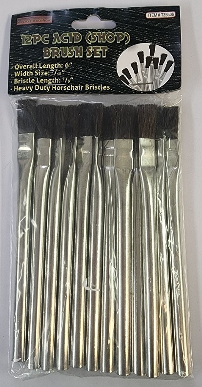 In summary, the Acid Brushes - 12 Piece Set - 7/16" is an essential addition to any toolkit or workshop. With their versatility, durability, and exceptional performance, they offer unmatched value for money. Whether you're a professional looking to upgrade your toolkit or a DIY enthusiast seeking reliable and versatile brushes, this set is sure to exceed your expectations.