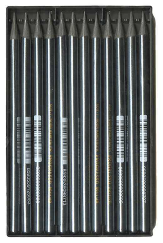 The Koh-I-Noor Progresso Woodless Graphite Pencil Set contains 2 each of 9B, 8B, 6B, 4B, 2B, and HB, offering a comprehensive range of hardness levels to suit your specific artistic needs. This set is perfect for artists who demand the very best, with the dense, high-quality Hardmuth graphite laying down rich, deep tones that effortlessly define form and spatial relationships.