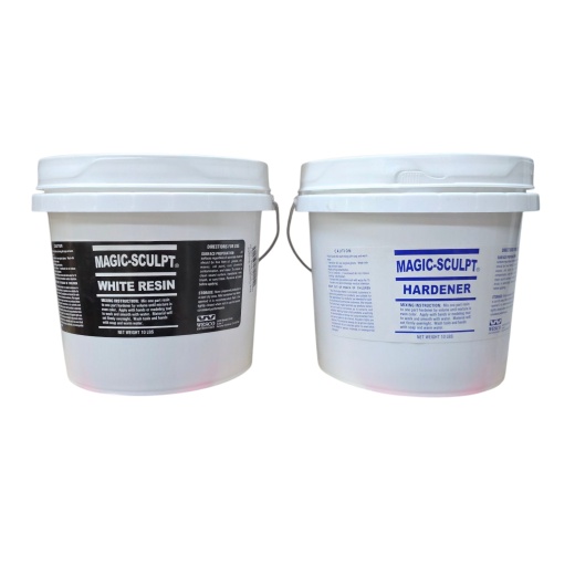 • Magic-Sculpt is a two part epoxy putty that comes in two containers, (as seen above) one resin and one hardener. Magic-Sculpt is mixed 1 to 1 by volume in small quantities as you need it. Almost anything can be used as an armature, such as; armature wire, metal mesh, styrofoam, wood and balled up tin foil.