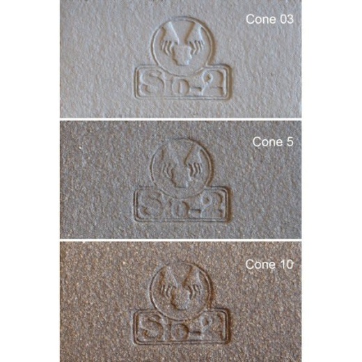 Sio-2 Zumaia Gray Sculpture Clay has a firing range of Cone 5-10 (2192º-2372ºF), with a biscuit temperature of Cone 06 (1855ºF). The clay has a water content of 17%, plasticity (IP Atterberg) of 16, and a carbonate content (CaCO3) of 0%. The drying shrinkage is 5.5%, firing shrinkage at Cone 10 is 3.9%, and porosity (water absorption) at Cone 10 is 2.6%. The dry bending strength is 2.5 N/mm2, and the fired bending strength (1300ºC) is 37.8 N/mm2. The thermal coefficient (25-500ºC) is 59.9x10^-7ºC^-1.
