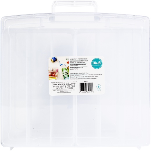 We R Washi Translucent Plastic Storage Bin 14"X13"X4.375" Case Keep all your favorite washi tape designs in one spot with the Washi Storage Bin by We R Memory Keepers! This awesome organizer can hold over 200 rolls of standard size washi tape rolls, and can be stored in the smallest of crafting spaces. The four removable trays make organizing and stashing a cinch! The Washi Storage Bin is also perfect for when you're on the go or planning a crafting weekend away. This package includes 1 Washi Tape Storage Bin. Imported.