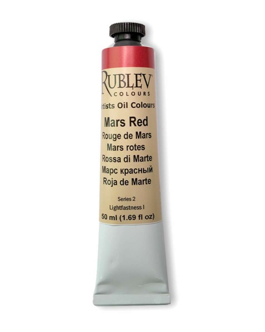 Mars Red is an intense maroon (dark brownish red with purple undertones) oil color. Mars colors are permanent pigments with good tinting strength and are good driers for oil paints. Originally a brand name in the late 18th century, Mars colors is now the common name for synthetic iron oxide pigments. Their chemical and physical properties are similar to the natural iron oxides. Mars colors are permanent pigments with good tinting strength and are good driers for oil paints.
