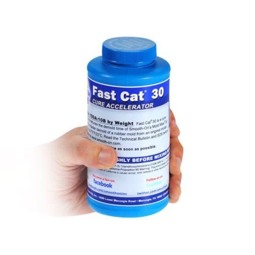 When used correctly, Fast Cat 30 can significantly minimize the time spent waiting for your molds to cure. With a 100A:10B pbw mix ratio, the pot life of Mold Max 30 is reduced from 45 minutes to just 10 minutes, and the demold time is slashed from 24 hours to a mere 1 hour. For even faster results, increasing the amount of Fast Cat 30 Part B to 15% (100A:15B pbw) can reduce the pot life to a remarkable 5 minutes and demold time to an incredible 30 minutes.