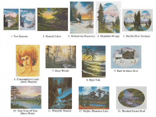 In this series, you'll discover an array of mesmerizing projects, each one showcasing Bob Ross's signature "wet-on-wet" technique. From the majestic "Mountain Mirage" to the whimsical "Double Oval Fantasy", every project is a masterclass in creating stunning landscapes and seascapes. You'll also have the opportunity to learn from John Thamm, a talented artist in his own right, as he lends his skills to the "Contemplative Lady" project.