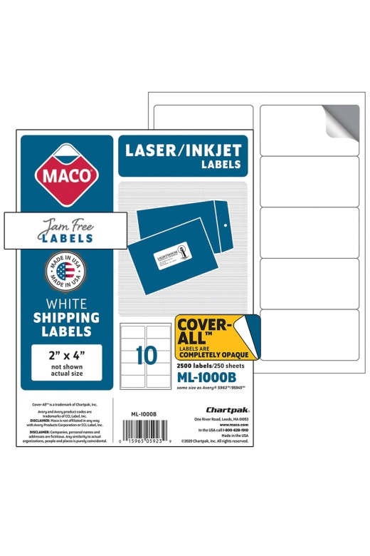 Ideal for a wide range of applications, these labels are perfect for businesses, entrepreneurs, and individuals who need to print labels quickly and efficiently. From mailing packages and shipments to labeling products and inventory, Maco's Laser/Ink Jet White Shipping Labels are the perfect solution.