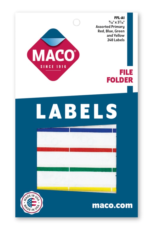 Maco, a trusted brand in the office supply industry, brings you these high-quality labels that are designed to meet your needs. With a proven track record of delivering reliable products, Maco is the perfect partner for all your office supply needs. Our File Folder Labels are made to last, with a durable adhesive that resists wear and tear. Plus, the bright, vibrant colors add a touch of personality to your filing system, making it more enjoyable to stay organized.