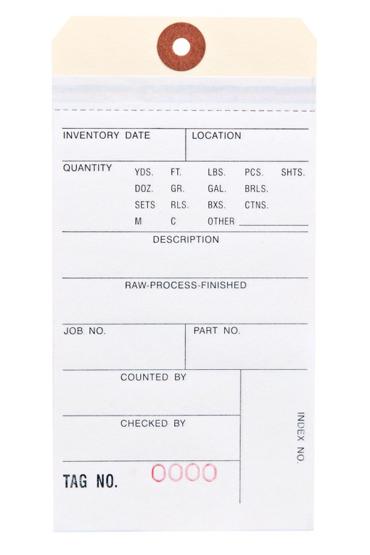 The two-part design of these tags allows you to write detailed information about each item, making it simple to access and update relevant data as needed. The top part of the tag remains with the item, while the bottom part serves as a detached receipt or record, allowing you to maintain a comprehensive and up-to-date inventory system.