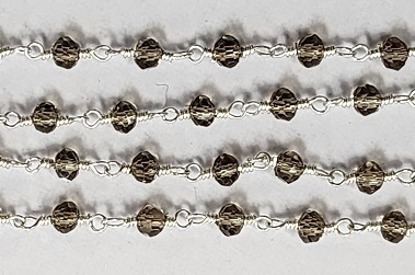 2 X 3Mm Faceted Gemstone Cut Rosary Chain - Black Diamond/Silver