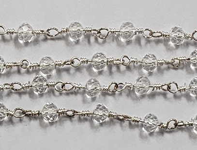 3 X 4Mm Faceted Gemstone Cut Rosary Chain - Crystal/Silver