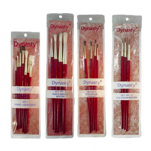 Dynasty Set #5 presents a 7-piece assortment of expertly crafted brushes that excel in delivering rich textures, subtle blending, and nuanced color application. This versatile set is perfect for artists seeking a comprehensive range of tools to tackle a wide spectrum of artistic projects. Meanwhile, Dynasty Set #6 focuses on the unique characteristics of white bristle rounds, boasting Nos. 2, 4, 6, and 8. These robust brushes are engineered to tackle heavy textures, bold strokes, and dynamic layering, making them ideal for artists who thrive in expressive, avant-garde, and abstract art.