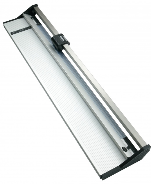 The Rotatrim Technical Cutter's sturdy extruded aluminum satin finish baseboard is warp-free and features parallel indents for added strength and stability. A factory-installed 10 1/2” rule and squaring arm ensures accurate measurements and precise cuts, every time. The transparent clamp strip and rubber gripper provide a firm, positive clamping action, keeping your materials securely in place throughout the cutting process.