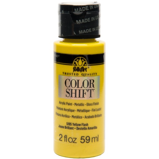 The Folkart Color Shift 2Oz in Yellow Flash is an exceptional choice for anyone looking to add a touch of magic to their creative pursuits. Whether you're working on a personal project, a gift for a friend, or a professional commission, this paint's unique properties are sure to inspire and delight. With its unparalleled quality, versatility, and performance, this paint is an investment in your creative potential. Give your imagination the freedom to soar with the Folkart Color Shift 2Oz.