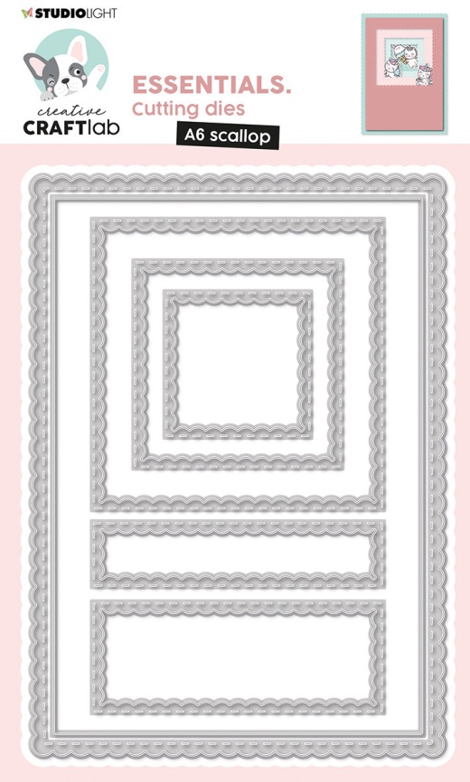 Add an extra touch of elegance to your craft projects with the CCL Cutting Die Scalloped Square Essentials 150x107x1mm 1 PC nr.425 from Studio Light. This versatile die set is designed to help you create stunning frames with a beautiful scalloped edge, perfect for adding a sophisticated flair to your cards, scrapbook layouts, and journal pages. The set includes 7 pieces, each precision-cut to ensure clean and crisp cuts, and is compatible with all major die-cutting machines.