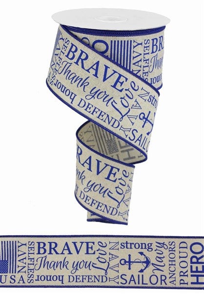 2.5"X10yd United States Navy On Royal Burlap Ribbon - Ultimate Patriotism & Sophistication