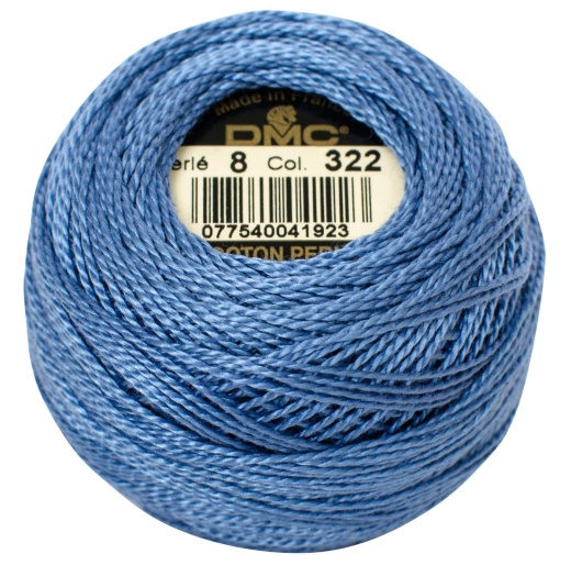 The DMC Pearl Cotton Crochet Thread Ball - Dark Baby Blue (322) is perfect for a variety of needlework techniques, including Cross Stitching, Needlepoint, and Embroidery. Its size 8 thread is easy to work with, making it ideal for stitching on a wide variety of fabrics.
