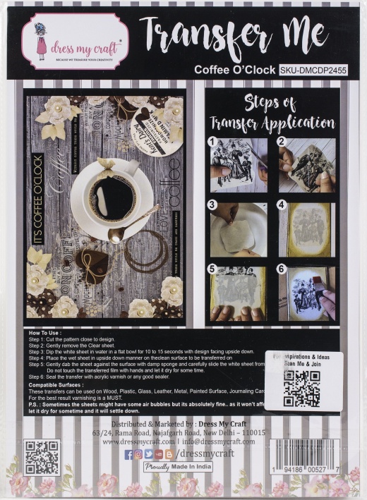What sets the Dress My Craft Transfer Me Sheet apart is its incredible versatility. Use it to create stunning cards, gift tags, and scrapbook pages, or get creative and add it to your mixed media projects, art journals, and DIY home decor. The possibilities are endless, and the Coffee O'Clock design is sure to spark your imagination. Whether you're a seasoned crafter or just starting out, this transfer sheet is an excellent addition to your stash, offering endless possibilities for artistic expression.