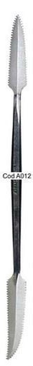 Double sided serrated knife edge tool. Rigid steel for texturing and working wax and plaster.
