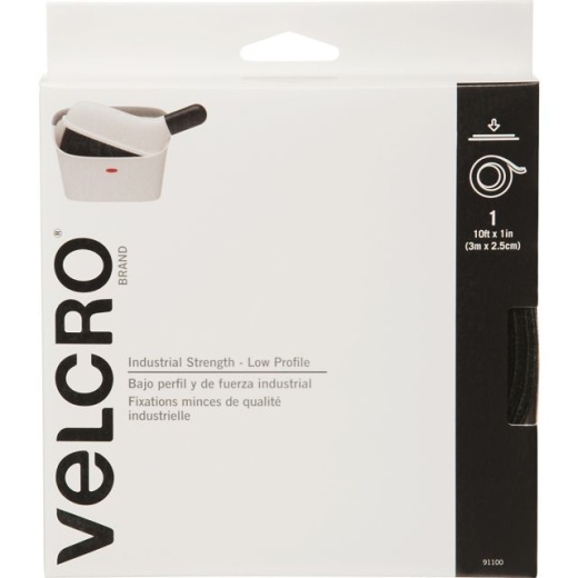 VELCRO(R) Brand Industrial Strength Low Profile Tape 1"X10' White VELCRO(R) BRAND: Ultra-Mate Low Profile Fastener. This strip of hook and loop tape is a sleek, amazingly strong, high performance fastener that has 30% less height. It is self-adhesive, water resistant, and can be used on virtually any smooth surface both indoors and out including paper and plastic. This package contains one 10 foot length of 1 inch wide white hook and loop tape. Made in USA.