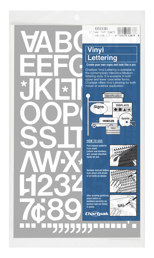 In addition to their durability, the Chartpak 1" White Vinyl Capital Letters & Numbers are also incredibly versatile. Use them to create attention-grabbing point-of-purchase displays, add visual interest to posters and signs, or identify important information such as dates, times, and locations. They're also a great way to add a professional touch to presentations, reports, and other visual materials. With their crisp, clean design, these letters and numbers are sure to elevate your visual communication and help you get your message across with clarity and style.