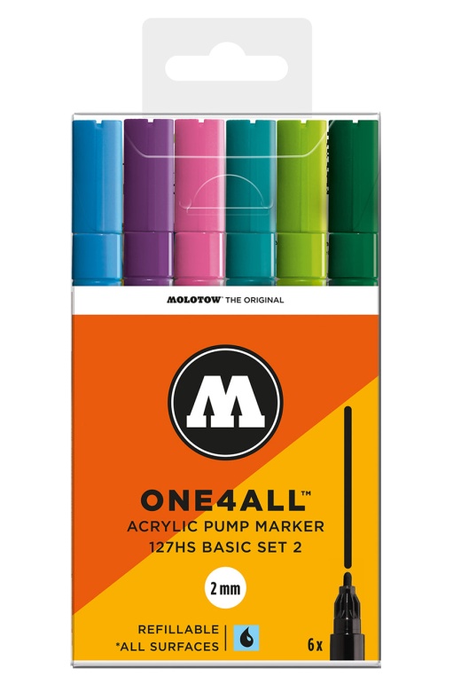 With the ONE4ALL 2mm 6pc Basic Set 2, you'll be able to unlock your full creative potential, exploring new techniques, and bringing your most imaginative ideas to life. Join the ranks of artists who trust Molotow to deliver exceptional results, and discover a world of artistic possibilities with this outstanding set.
