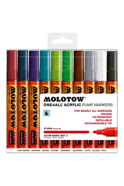 Whether you're working on a large-scale mural, crafting intricate illustrations, or simply doodling for fun, the One4all 4mm 10pc Basic Set 2 is the perfect addition to your creative arsenal. With its unparalleled performance, versatility, and value for money, it's no wonder that Molotow's One4all range is the go-to choice for professionals and hobbyists alike.