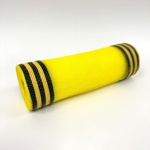 Add a Touch of Festive Cheer with Our Yellow With Black Stripes Deco Mesh