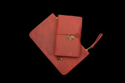 - High-quality, handmade leather journals and zipper pouches