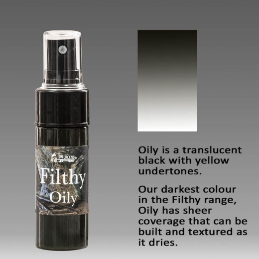 One of the most impressive aspects of the Allied Fx Company On Location Filthy is its versatility. Available in four distinct colors, each one specifically designed to mimic a different type of dirt or grime. Oily, a deep green-black hue, is perfect for capturing the look of oil slicks or heavy machinery. Muddy, with its reddish-brown tone, is ideal for recreating the look of muddy terrain or worn, weathered surfaces. The new Gravel color, a soft taupe, is great for adding a subtle, textured look to your projects. And for a darker, grittier aesthetic, Grime, with its dark ash brown color, is the perfect choice.