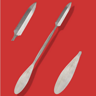 - Serrated spear-shaped end for cutting and texturing, and semi-flexible medium spatula for shaping and refining