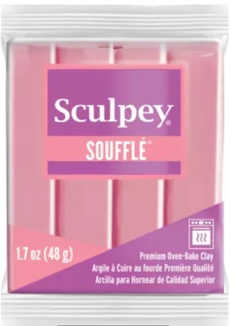 Soufflé Colors: French Pink is safe and non-toxic, making it perfect for crafting projects. To bake, simply place the clay in a home oven at a temperature of 275 °F (130 °C) for 30 minutes per 1/4 in (6 mm) thickness. Do not microwave and do not exceed the recommended baking time or temperature.
