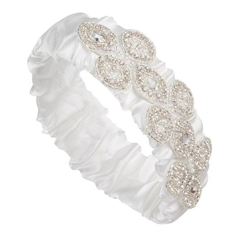 David Tutera White Satin Wedding Garter With Embellished Silver Oval Designs