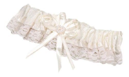 Make your wedding day even more unforgettable with this exquisite Cream Lace Trim Heart Bridal Garter by Darice Crafts AC. This delicate satin wedding garter is rimmed on the bottom with matching 2 inch wide cream lace and accented with a narrow white satin bow, adding a touch of elegance to your overall look.
