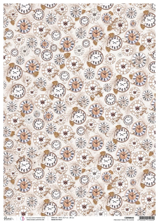 Ciao Bella Rice Paper A3 Piuma Pinecones' Round The Clocks - 3 Sheets
