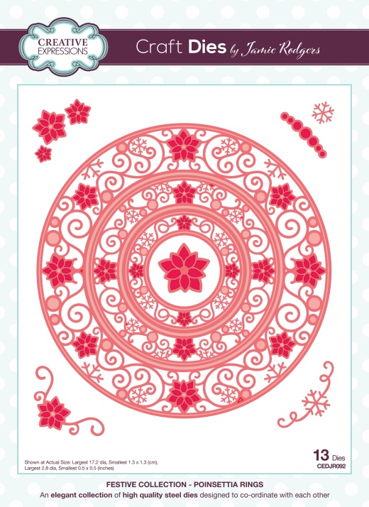 As part of the Creative Expressions brand, you can trust that this die set meets the highest standards of quality and craftsmanship. With a reputation for excellence in the crafting industry, Creative Expressions is dedicated to providing crafters with the tools they need to unleash their creativity. With the Jamie Rodgers Poinsettia Rings Craft Die, you'll be able to take your festive crafting to new heights, creating projects that are truly unforgettable.