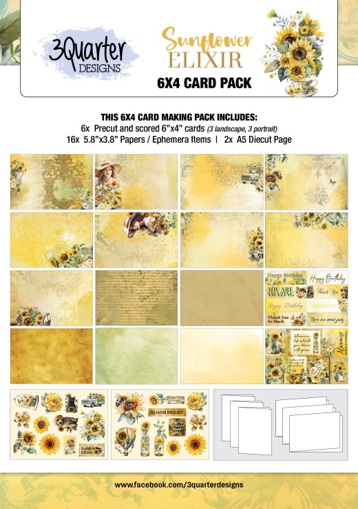 Whether you're a seasoned crafter or just starting out, the Sunflower Elixir 6x4 Card Pack is an absolute treasure trove of creative possibilities. With its gorgeous golden yellow tones, adorable designs, and versatile paper elements, this pack is sure to inspire you to create something truly special. So why wait? Unleash your creativity and let the Sunflower Elixir 6x4 Card Pack from 3Quarter Designs guide you on a journey of paper crafting bliss!