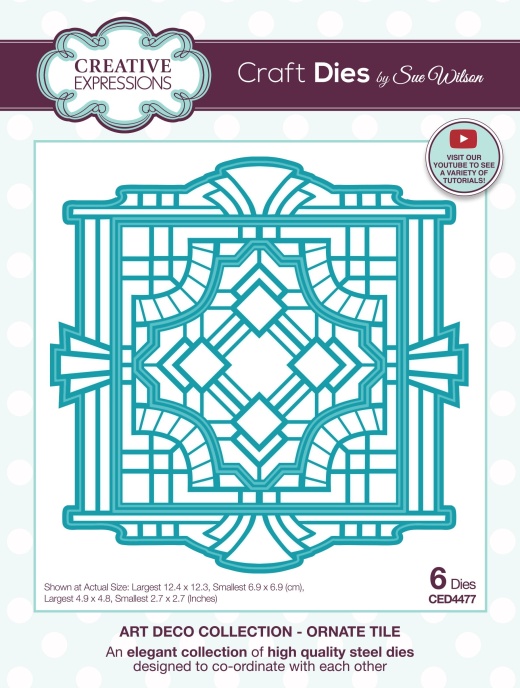 By adding the Ornate Tile craft die to your collection, you'll unlock a world of creative possibilities and take your crafting skills to new heights. With its exceptional quality, versatility, and stunning design, this die is an absolute must-have for crafters who demand the best. So why settle for ordinary when you can create extraordinary with the Ornate Tile die from Creative Expressions' Sue Wilson Art Deco Collection?