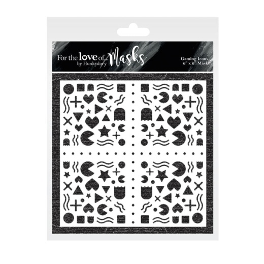 The For The Love Of Masks - Gaming Icons mask is designed to help you create unique and eye-catching backgrounds, borders, and corners for your cards, scrapbook pages, and other paper crafts. Simply place the 6” x 6” mask onto your card front and ink through with your choice of Prism Ink Pad colours to reveal an instant background that's sure to impress. But that's not all - you can also experiment with glimmer mists, embossing powders, or even texture pastes to create one-of-a-kind colour combinations and ombré effects.