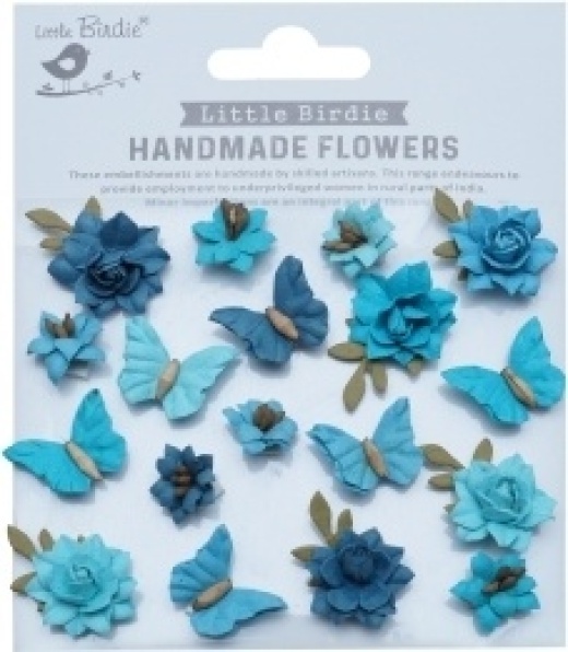 Little Birdie Cloria Paper Flowers 18/Pkg Aqua Splash Little Birdie Cloria Paper Flowers 18/Pkg-Aqua Splash