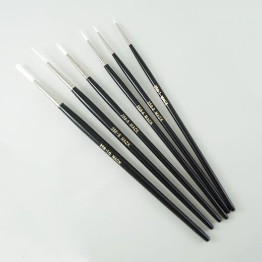 This synthetic white taklon has the same snap and lettering qualities as sable. This rigger is perfect for outlining and script. It features a black polished handle and seamless nickel ferrule.