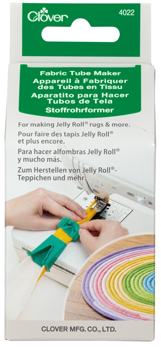 Clover Fabric Tube Maker With this innovative design, the hard work of making Jelly Roll projects is eliminated. No more tedious folding and clipping. No more tangled strips that come unclipped as you work. The Jelly Roll Fabric Tube Maker eliminates the need to hand fold and clip your fabric and batting strips before you sew. Insert your strip sandwich into the tool, and easily pull them through. The tool folds the sides of your strips in, then folds that in half, ready to sew. Get right to the fun and creative part of sewing Jelly Roll strips into rugs, baskets, mats, coasters and more! This package contains one fabric tube maker. Imported.