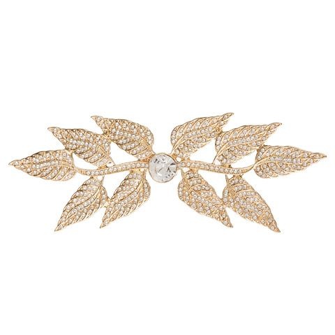 - Exquisite gold metal leaf design with radiant rhinestones for added elegance