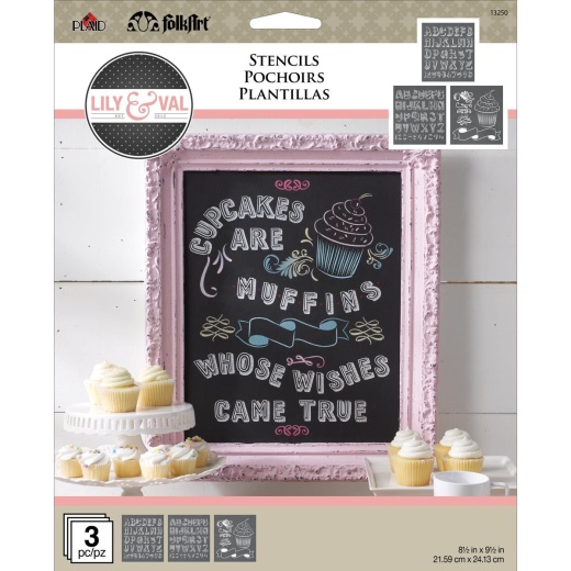 Plaid Folkart Cupcakes Lily And Val Stencil Pack
