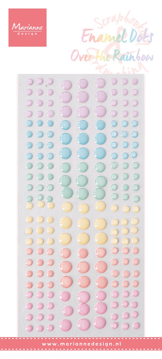 Embark on a creative journey with the Marianne Design Enamel Dots - Over The Rainbow, a stunning collection of pastel-hued enamel dots that will add a mesmerizing pop of color and dimension to your card creations. This beautifully curated set comprises of 198 dots in three varying sizes, 4 mm, 6 mm, and 7 mm, allowing for endless design possibilities. Whether you're a seasoned crafter or just starting out, these exquisite enamel dots will elevate your card-making skills to new heights.