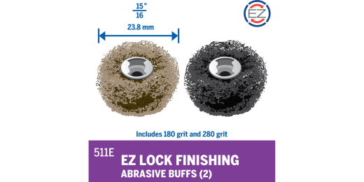 The two buffs included in this pack are designed for high-quality finishing. The very fine 15/16 In. (23.8mm) 180 grit buff is perfect for removing minor imperfections, while the extra fine 15/16 In. (23.8mm) 280 grit buff provides an ultra-smooth finish.